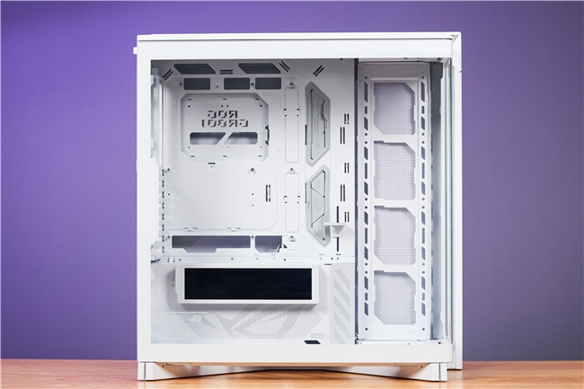 对于追求高颜值桌搭的玩家而言,此次即将推出的ROG幻世神海景房机箱白色版本,无疑是不二之选。其采用一体成型曲面玻璃设计,让整体观感更加通透,内部硬件布局清晰可见,玩家也可以轻松打造出沉浸式的海景房效果。不仅如此,还支持免工具安装,玩家只需同时按下后面按钮与前部底部扣手,然后往前拉,即可轻松取下面板,大幅简化了装机和后期维护的流程,让玩家在操作的流程中更加顺手。