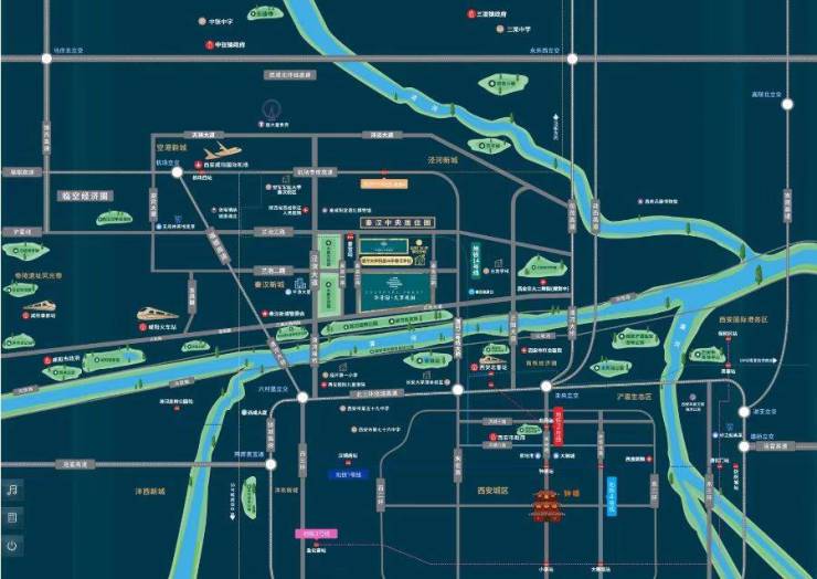 医疗:空军军医大学秦汉校区(建造中)、陕西省西咸新区人民医院,西安儿童医院经开院区,西安红会世界医院